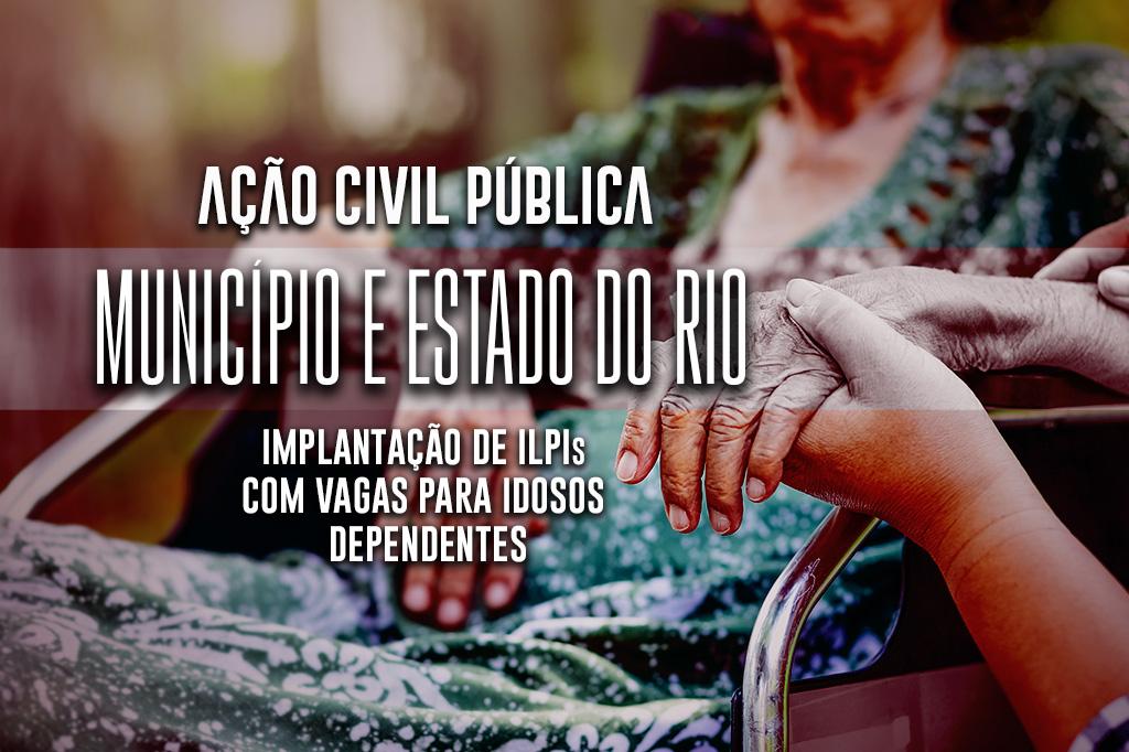 O Ministério Público do Estado do Rio de Janeiro (MPRJ), por meio da Promotoria de Justiça de Tutela Coletiva de Proteção ao Idoso da Capital, ajuizou ação civil pública, com pedido de liminar, contra o Município e o Estado do Rio, para a implantação de Instituições de Longa Permanência (ILPIs) com vagas suficientes para o acolhimento de pessoas idosas dependentes em situação de risco e vulnerabilidade, especialmente para aquelas internadas irregularmente em leitos hospitalares, como os de cuidados prolongados.