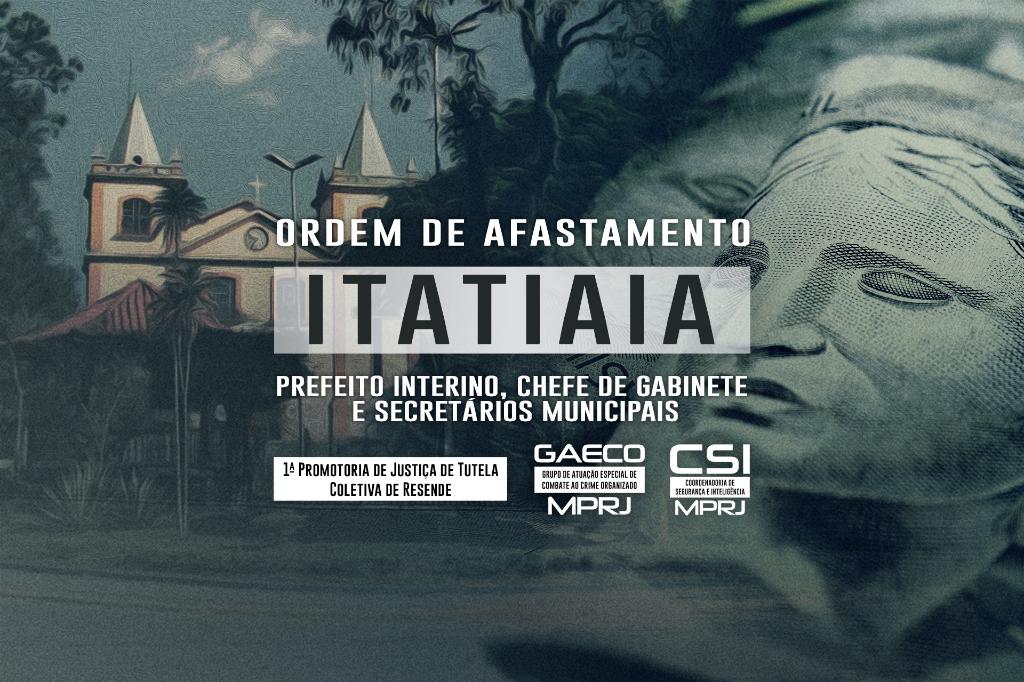 O Ministério Público do Estado do Rio de Janeiro (MPRJ), por meio do Grupo de Atuação Especial de Combate ao Crime Organizado (GAECO/RJ) e da 1ª Promotoria de Justiça de Tutela Coletiva de Resende, com o apoio da Coordenadoria de Segurança e Inteligência (CSI/MPRJ), realiza, nesta terça-feira (08/06), a segunda fase da operação Apanthropía para cumprir a ordem de afastamento do cargo do prefeito interino de Itatiaia, Imberê Moreira Alves, do seu chefe de gabinete, Fábio Alves Ramos, e dos secretários municipais de Saúde, Raphael Figueiredo Pereira, de Educação, Kézia Macedo dos Santos Aleixo, e de Administração, Gustavo Ramos da Silva, por gravíssimos atos de improbidade administrativa. As ordens foram expedidas pela Vara Única de Itatiaia, que também expediu mandados de busca e apreensão em endereços ligados ao prefeito e nos gabinetes dos demais agentes públicos, bem como ordem de bloqueio de bens dos investigados.