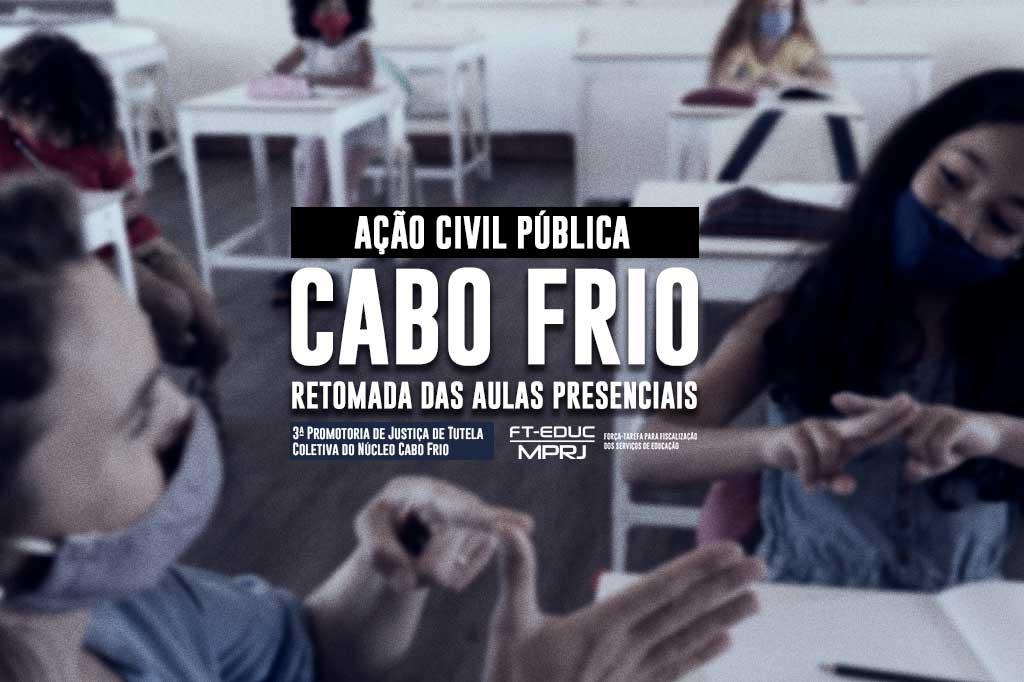 Pelo exposto, o MPRJ afirma que o município de Cabo Frio tem violado o direito à educação da sua rede pública de alunos, com a ausência de motivação técnica que justifique a não apresentação de um plano de retomada das aulas presenciais, a partir da indicação de um parâmetro sanitário fundamentado e adequado com a essencialidade da Educação. No caso de não atendimento às decisões judiciais, e também de não cumprimento dos prazos estabelecidos em Juízo, o MPRJ requer a aplicação de multa diária e pessoal no valor de R$ 10 mil, com a caracterização de ato de improbidade administrativa por parte do prefeito municipal, José Bonifácio.