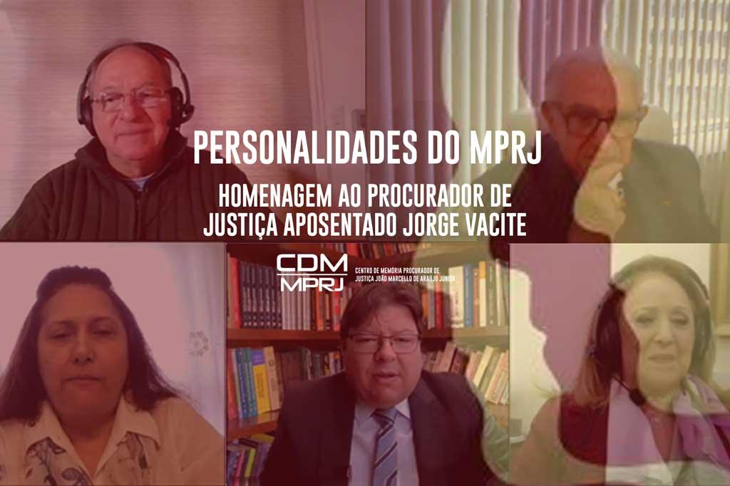 O Ministério Público do Estado do Rio de Janeiro (MPRJ), por meio do Centro de Memória Procurador de Justiça João Marcello de Araújo Júnior (CDM/MPRJ), realizou na terça-feira (03/08), a gravação virtual da 13ª edição do projeto Personalidades do MPRJ, por meio da plataforma Teams. A edição homenageou o procurador de Justiça aposentado Jorge Vacite Filho, considerado um humanista do Júri. Durante a entrevista, Vacite contou como foi seu ingresso na instituição na década de 70 e citou casos em que atuou no Tribunal do Júri de grande repercussão à época.