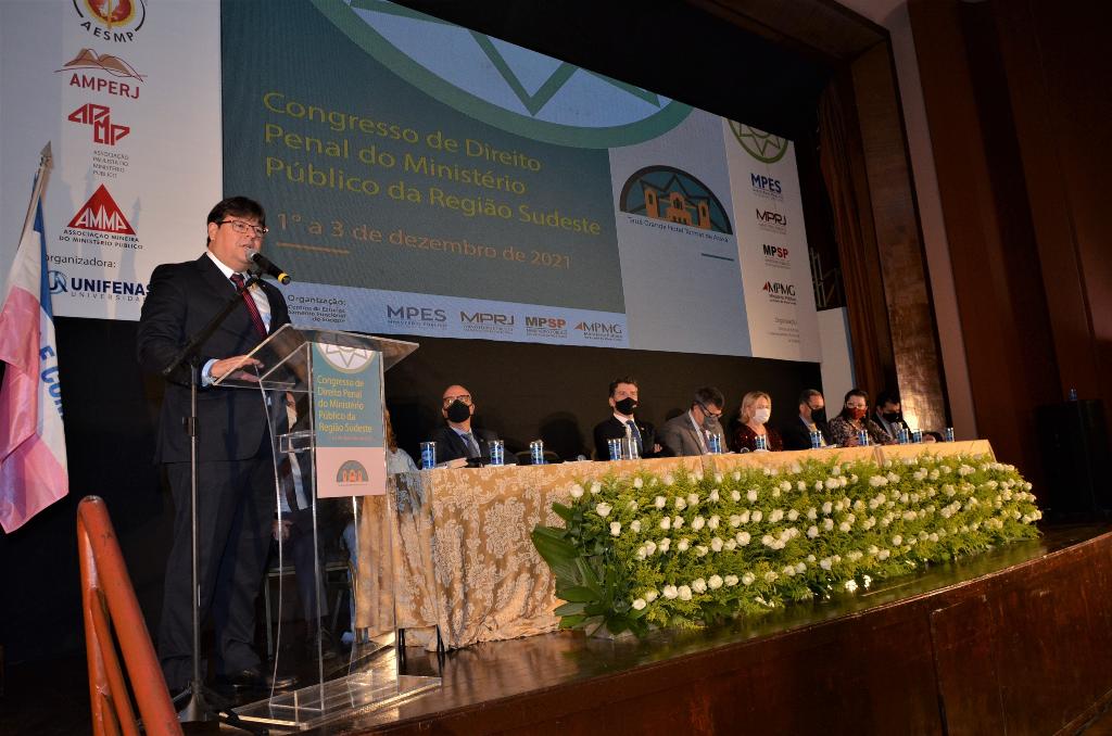 O procurador-geral de Justiça, Luciano Mattos, participou, no início da noite desta quarta-feira (01/12), da mesa de abertura do Congresso de Direito Penal do Ministério Público da Região Sudeste. O evento presencial ocorre até a próxima sexta-feira (03/12), na cidade mineira de Araxá, e conta também com transmissão pelo Youtube. Realizado pelos MPs dos quatro estados da região, com apoio das entidades de classe e sob a coordenação do Ministério Público do Estado de Minas Gerais (MPMG), o encontro é voltado especialmente para procuradores e promotores de Justiça com atribuições na área criminal, possibilitando o intercâmbio de experiências e o debate de soluções e ações colaborativas de combate ao crime no Sudeste.
