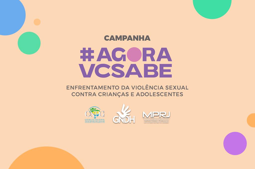 O Ministério Público do Estado do Rio de Janeiro (MPRJ) apoia a iniciativa #agoravcsabe, com o objetivo de enfrentar a violência sexual contra crianças e adolescentes. Aprovada pelo Conselho Nacional de Procuradores-Gerais (CNPG), por meio do Grupo Nacional de Direitos Humanos (GNDH), a campanha O Levante (#agoravcsabe) foca em ações para a conscientização geral, o estímulo à denúncia, o aprimoramento das redes protetivas, da legislação sobre o tema e a desnaturalização da prática.