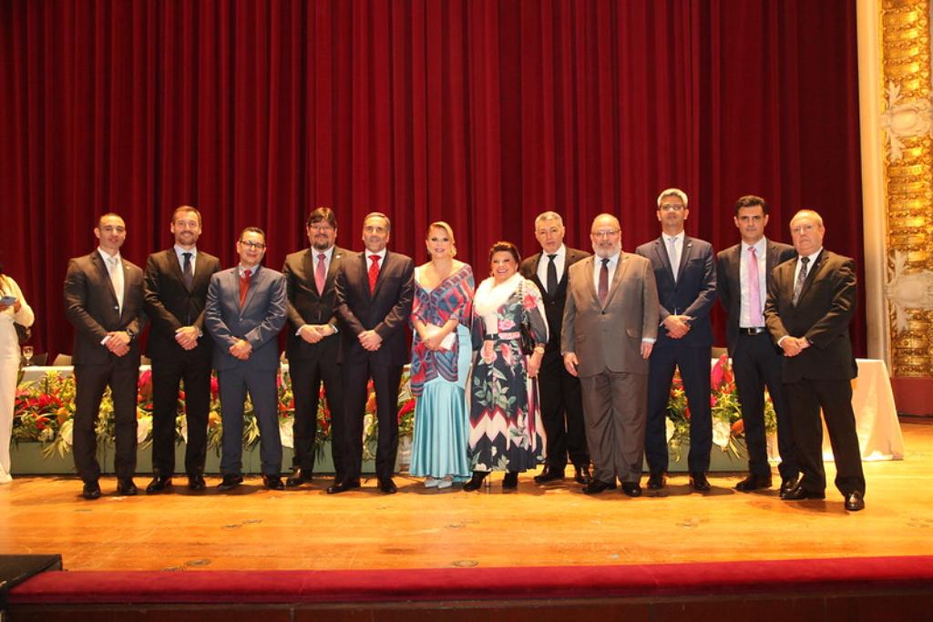 O procurador-geral de Justiça, Luciano Mattos, participou, na noite de sexta-feira (27/05), da solenidade de posse de Mario Luiz Sarrubbo para mais um mandato à frente do Ministério Público do Estado de São Paulo (MPSP), no biênio 2022/2024. A solenidade foi realizada no Theatro Municipal da capital paulista, e reuniu membros do MP de São Paulo e PGJs de diversos MPs estaduais, além de personalidades do meio político e do judiciário. Sarrubbo foi reconduzido ao cargo pelo governador Rodrigo Garcia, após ser o mais votado na eleição, realizada em 9 de abril. Em seu discurso, o PGJ afirmou que pretende trabalhar para que o MPSP atue em prol de melhorias nas políticas públicas em atenção à população mais vulnerável do estado. O PGJ de São Paulo foi conduzido à mesa da solenidade pelas procuradoras de Justiça Mônica Desinano e Aparecida Maria Valadares.