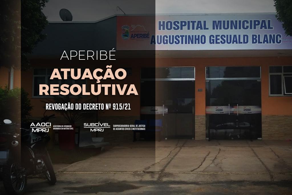 Em reunião, realizada em 30 de junho, com a assessora-chefe da AAOCI/MPRJ, procuradora de Justiça Ana Cristina Lesqueves Barra, e a promotora de Justiça Simone Rocha de Araújo, o procurador-geral do Município de Aperibé, Leandro de Almeida Bairral, informou que o decreto, que já estava suspenso em cumprimento às orientações da AAOCI/MPRJ, seria revogado. Com a revogação publicada em 6 de julho, o Ministério Público determinou o arquivamento do procedimento administrativo, evidenciando um clássico exemplo de atuação resolutiva.