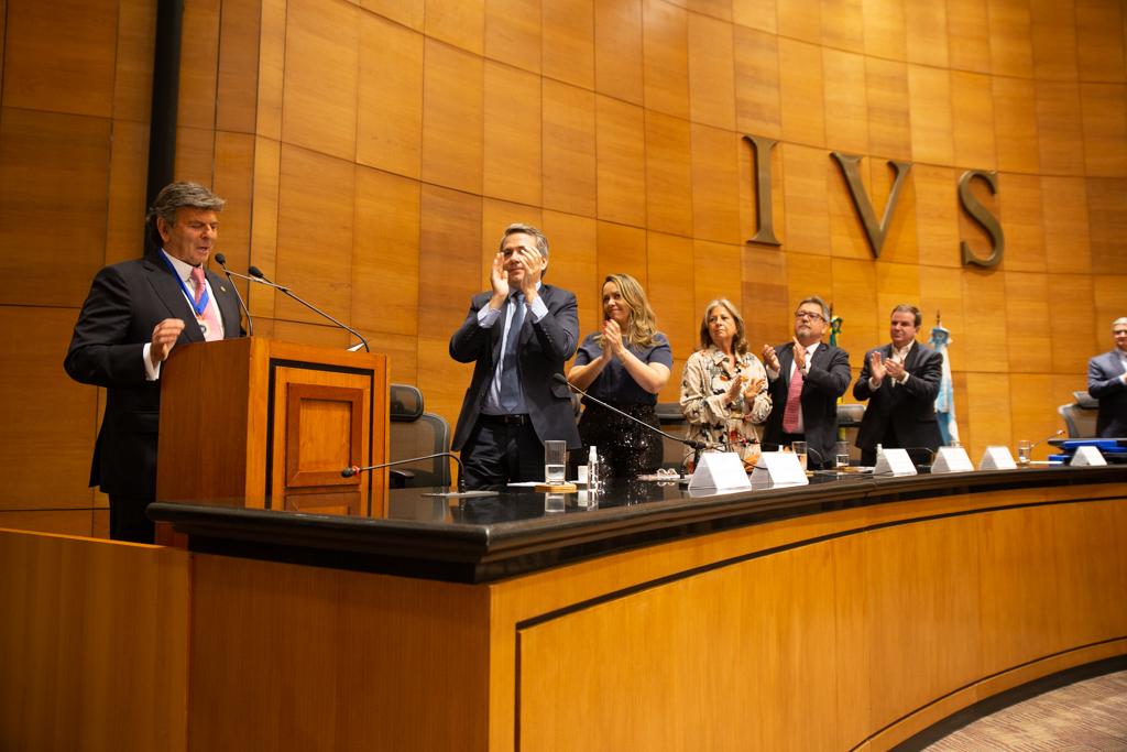 Em seu discurso, Fux saudou Antonio José Campos Moreira, lembrando que iniciou sua carreira jurídica no Ministério Público do Estado do Rio de Janeiro (MPRJ). “Ingressei no MPRJ, por quem tenho grande carinho, como promotor de Justiça e, 10 anos depois, prestei concurso para a magistratura no TJ-RJ. Gostaria de agradecer as homenagens prestadas, glórias imateriais que relembram a história da minha vida. Durante a minha trajetória, tive a honra de ser agraciado com outras honrarias, mas não existe honra maior do que ser homenageado por seus iguais, em especial no meu TJ-RJ. Você pode trocar de profissão e de domicílio, mas não pode trocar de berço”, afirmou o ministro do STF, visivelmente emocionado.