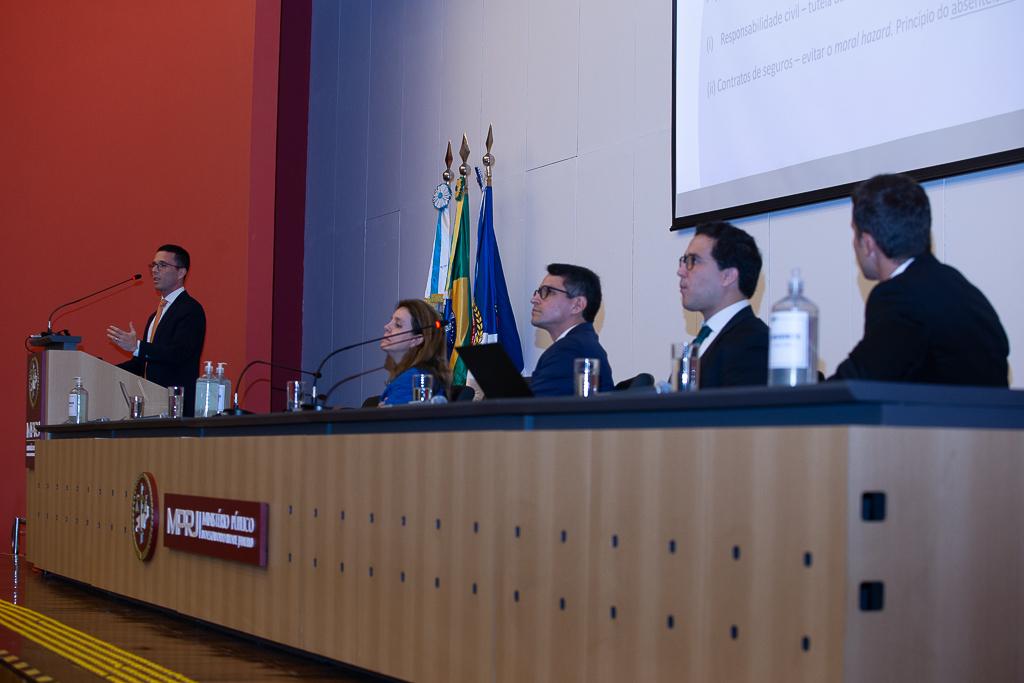 O evento foi encerrado com um debate sobre as atualizações dos pressupostos da responsabilidade civil. Foram abordados aspectos como os desafios encontrados ao tratar do dano moral e a possibilidade de equiparar a culpa grave ao dolo, analisados à luz da Responsabilidade Civil e do Contrato de Seguro. A mesa foi comandada pelo professor do IBMEC, Antônio dos Reis Jr., e contou com a participação dos advogados Ilan Goldberg e Sérgio Savi, e dos professores da UERJ, Gisela Sampaio e Rodrigo da Guia.