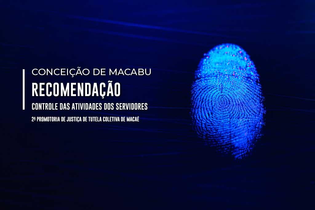 A 2ª Promotoria de Justiça de Tutela Coletiva de Macaé emitiu, nesta terça-feira (27/06), Recomendação ao Município de Conceição de Macabu para que providencie, no prazo máximo de 30 dias, a implementação da obrigatoriedade de relatório diário das atividades desempenhadas pelos seus servidores. Segundo foi constatado pela Promotoria, apenas os servidores da Secretaria de Saúde utilizam o ponto biométrico. Os demais órgãos ligados à Prefeitura de Conceição de Macabu são controlados por folhas de pontos, as quais são facilmente passíveis de fraudes e outras irregularidades.