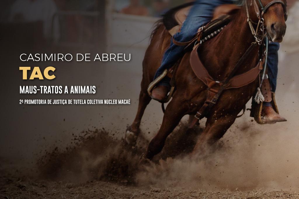O Ministério Público do Estado do Rio de Janeiro (MPRJ), por meio da 2ª Promotoria de Justiça de Tutela Coletiva do Núcleo Macaé, obteve o compromisso do Município de Casimiro de Abreu para que, nos eventos de rodeio ou similares realizados na cidade, com bovinos e equinos, não sejam utilizados equipamentos ou técnicas que possam configurar maus-tratos aos animais. O Termo de Ajustamento de Conduta (TAC) foi assinado pela promotora de Justiça Marcia Pacheco e pelo prefeito de Casimiro de Abreu, Ramon Dias Gildalte.
