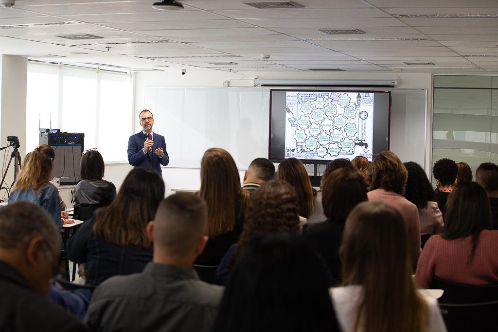 O Ministério Público do Estado do Rio de Janeiro (MPRJ) promoveu, nesta sexta-feira (21/07), a aula aberta da Pós em Crianças, Adolescentes e Famílias. O evento teve o objetivo de evidenciar as principais questões relacionadas à violência doméstica familiar praticada contra crianças e adolescentes e aprofundar os estudos sobre as Leis 13.431/17 e 14.344/22 – Lei da escuta protegida e Lei Henry Borel. A palestra foi oferecida pelo Instituto de Educação Roberto Bernardes Barroso (IERBB/MPRJ) e proferida pelo promotor de Justiça Rodrigo Medina, titular da 6ª Promotoria de Justiça da Infância e da Juventude da Capital. Aberta para os alunos da pós, público interno e externo da Instituição, a aula foi realizada de forma online e presencial no IERBB/MPRJ.