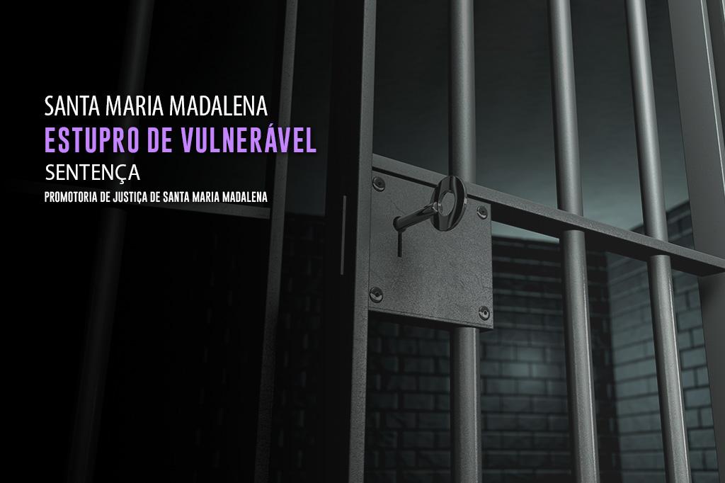 O Ministério Público do Estado do Rio de Janeiro (MPRJ), por meio da Promotoria de Justiça de Santa Maria Madalena, obteve na Justiça a condenação de um homem pelo crime de estupro de vulnerável contra a filha, à época com apenas três anos de idade, em Santa Maria Madalena, na Região Serrana. Ele foi sentenciado a 15 anos de prisão.