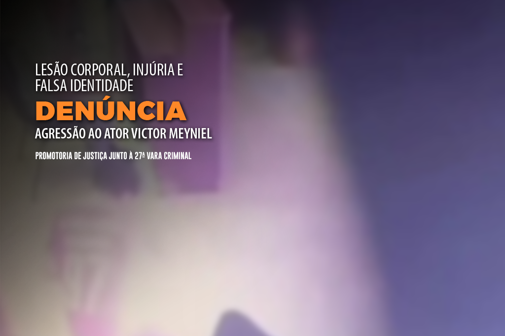 A Promotoria de Justiça junto à 27ª Vara Criminal da Capital denunciou, nesta terça-feira (12/09), por lesão corporal, injúria e falsa identidade, Yuri de Moura Alexandre, flagrado agredindo o ator Victor Meyniel Rocha no último dia 02/09, em um prédio em Copacabana. De acordo com a denúncia, além de espancar o ator, Yuri o ofendeu utilizando-se de expressões homofóbicas, além de ter afirmado a policiais militares pertencer à Aeronáutica, apesar de não fazer parte dos quadros da instituição.