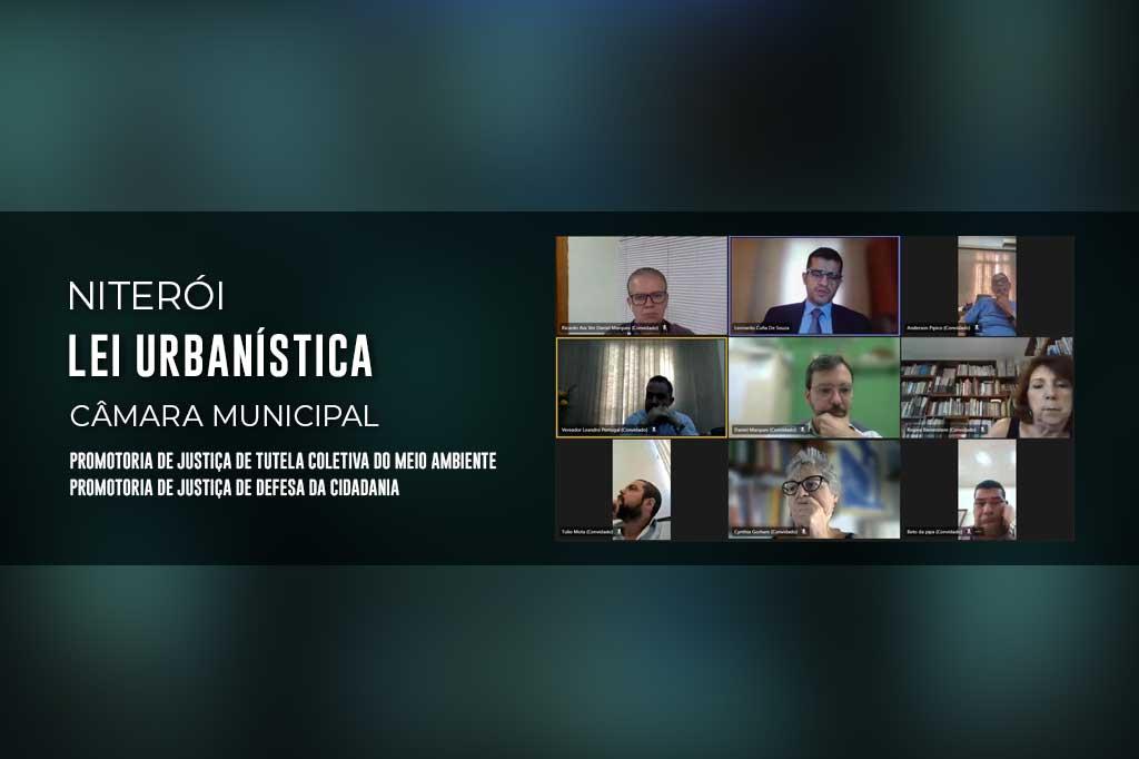Promotores de Justiça de Tutela Coletiva do Meio Ambiente e de Defesa da Cidadania de Niterói participaram, nesta segunda-feira (23/10), de uma reunião virtual com vereadores para discutir a tramitação do projeto da nova lei urbanística do município. Durante o encontro, que também contou com a presença do procurador-geral do município, Vinicio Salvarezza, e de representantes da sociedade civil, ficou definido que, durante as discussões da proposta na Câmara, que devem acontecer a partir de novembro, sempre haverá um representante técnico do Poder Executivo para tirar dúvidas sobre o projeto que será encaminhado pela Prefeitura para análise da Casa.