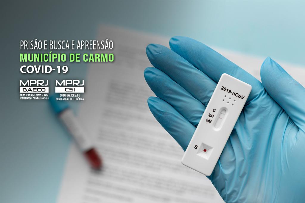 Também são alvos da operação o ex-secretário de Meio Ambiente e a ex-secretária de Saúde de Carmo, além de servidores da Prefeitura de Carmo. Investigações do GAECO/MPRJ revelaram que a compra fraudulenta dos respiradores ocorreu no ano de 2020, no contexto de um grande esquema de corrupção, com a finalidade principal de desviar recursos públicos da saúde destinados única e exclusivamente para o combate à pandemia de COVID-19. O ex-prefeito de Carmo é apontado na denúncia como um dos líderes da organização criminosa.