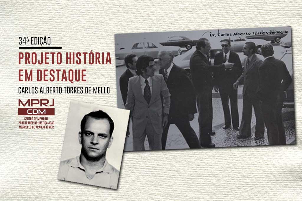 O Ministério Público do Estado do Rio de Janeiro (MPRJ), por meio do Centro de Memória Procurador de Justiça João Marcello de Araújo Júnior (CDM/MPRJ), homenageia, na 34ª edição do projeto “História em Destaque”, o promotor de Justiça Carlos Alberto Tôrres de Mello, por meio de uma fotografia do livro “Um Olhar sobre o Ministério Público Fluminense” (2016), de Célio Erthal Rocha. Na fotografia estão presentes, o homenageado, Carlos Alberto Tôrres de Mello - o 4º da esquerda para a direita -, Amaro Cavalcanti Linhares e Roberval Clementino do Monte. A foto revela um momento de congraçamento entre os membros dos Ministérios Públicos do antigo Estado do Rio e da Guanabara durante um almoço na Praia de São Francisco em Niterói, no dia 09/08/1974.
