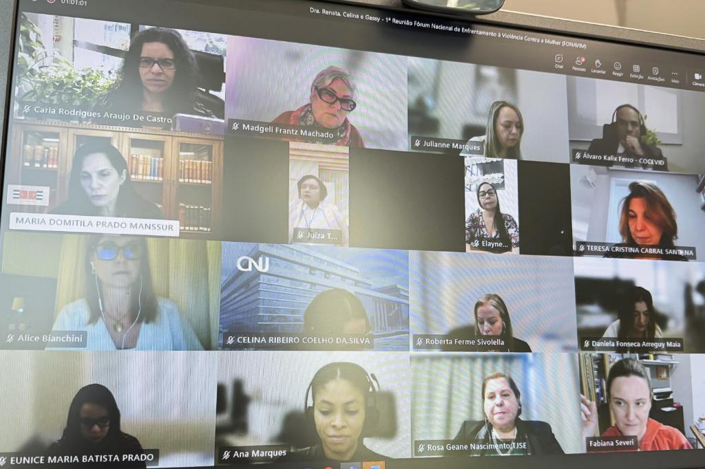 A reunião, realizada de forma online, pela plataforma Teams, contou com as participações de integrantes do CNJ; do Conselho Nacional do Ministério Público (CNMP); dos Tribunais de Justiça dos Estados de São Paulo, Minas Gerais, Maranhão, Rondônia, Sergipe, Bahia, Pernambuco, e também dos Estados do Amapá, Ceará, Tocantins e de instituições que integram os sistemas de Justiça e acadêmico voltados para o combate à violência doméstica contra a mulher.
