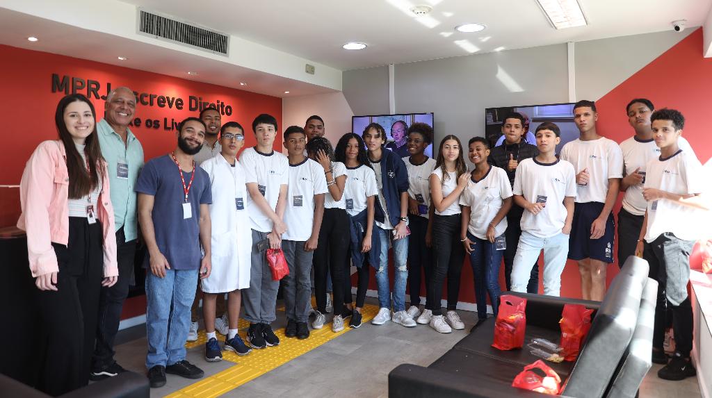 Os estudantes foram recepcionados por Deivson Sabadini, responsável técnico do Memorial, por Lucas Pinheiro e Beatriz Oliveira, ambos estagiários de História. Durante a visita, os alunos tiveram a oportunidade de aprender sobre a história e as áreas de atuação do MPRJ, onde os mediadores utilizaram de exemplos para ajudar os estudades a entender como a instituição pode contribuir em sua vida cotidiana.
