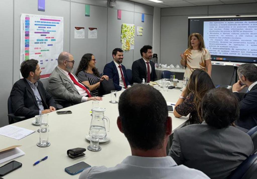 Participaram ainda o delegado Robson Ferreira, da Subsecretaria Operacional da Polícia Civil, o coronel Ranulfo Brandão, chefe da Seção de Planejamento Operacional da Polícia Militar e Gustavo Ribeiro, Chefe de Gabinete da secretaria municipal de Educação. Foram estabelecidos parâmetros a serem observados para reduzir os danos no aprendizado dos alunos da rede municipal em decorrência da suspensão de aulas causadas pela violência no entorno das escolas, em especial nos dias de operação das forças de segurança.