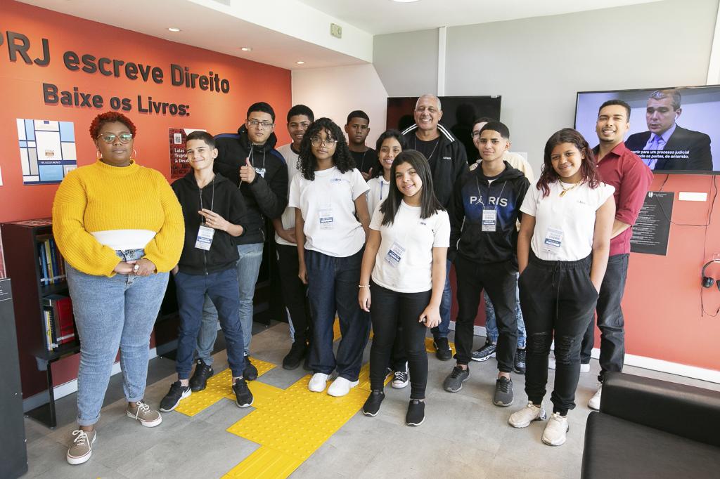 O Ministério Público do Estado do Rio de Janeiro (MPRJ), por meio do Centro de Memória Procurador de Justiça João Marcello de Araújo Júnior (CDM/MPRJ), recebeu, nesta terça-feira (27/08), alunos e um professor da Escola Municipal Joaquim da Costa Ribeiro, de Padre Miguel, para uma visita guiada pelo Corredor Cultural Promotor de Justiça Stênio Lutgardes Neves, localizado no prédio das Procuradorias da instituição. O passeio faz parte do projeto Calçada da Cidadania, uma iniciativa conjunta do MPRJ com a OAB-RJ, o IAB e a Defensoria Pública, que tem como objetivo apresentar o sistema judicial para estudantes do ensino médio e fundamental das redes públicas e privadas.