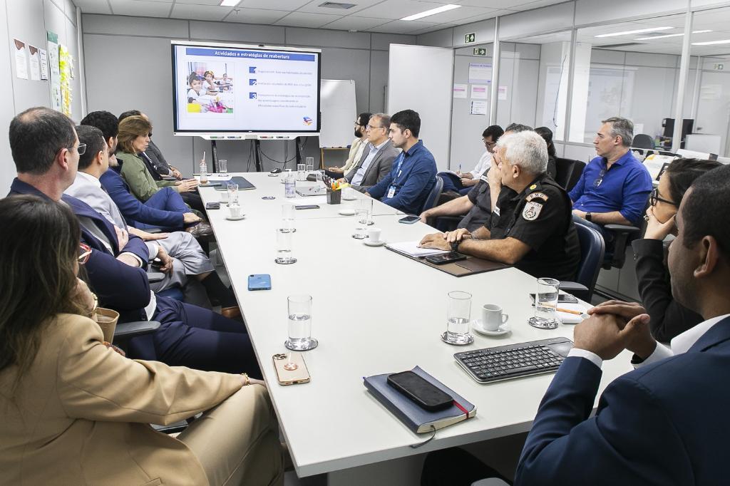 O Ministério Público do Estado do Rio de Janeiro (MPRJ) recebeu, nesta quinta-feira (29/08), representantes da Polícia Militar, da Polícia Civil e da Secretaria Municipal de Educação do Rio de Janeiro (SME-Rio) para discutir o cumprimento do protocolo de segurança no entorno das escolas recentemente firmado e as ações que vêm sendo implementadas para minimizar o impacto das recentes operações de demolição de imóveis no Complexo da Maré nas escolas da região.