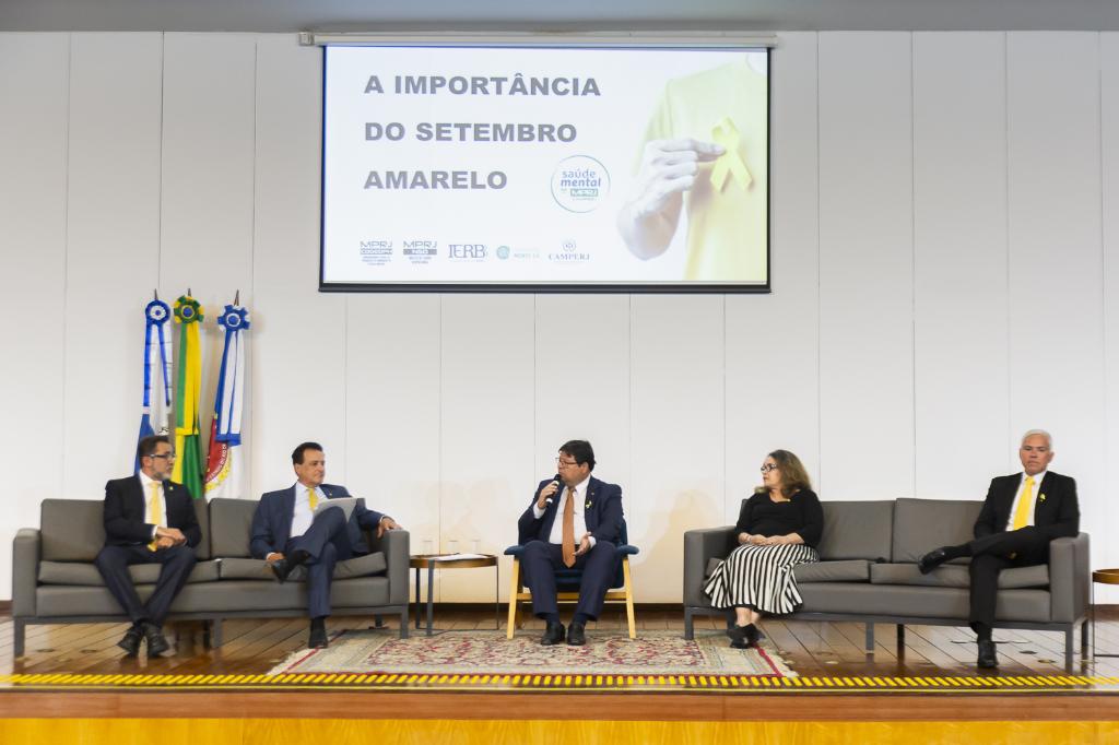 A mesa de abertura contou com as presenças do procurador-geral de Justiça, Luciano Mattos, representante do Conselho Nacional de Procuradores-Gerais de Justiça do Ministério Público dos Estados e da União (CNPG) na temática da saúde mental; do subprocurador-geral de Justiça de Administração, Eduardo Lima Neto; da coordenadora-geral de Promoção da Dignidade da Pessoa Humana (COGEPDPH/MPRJ), Patrícia Carvão; do vice-diretor do Instituto de Educação Roberto Bernardes Barroso do Ministério Público do Estado do Rio de Janeiro (IERBB/MPRJ), Alexandre Couto Joppert e do psiquiatra Antônio Geraldo, presidente da associação brasileira de psiquiatria (ABP) e coordenador nacional da campanha Setembro Amarelo.