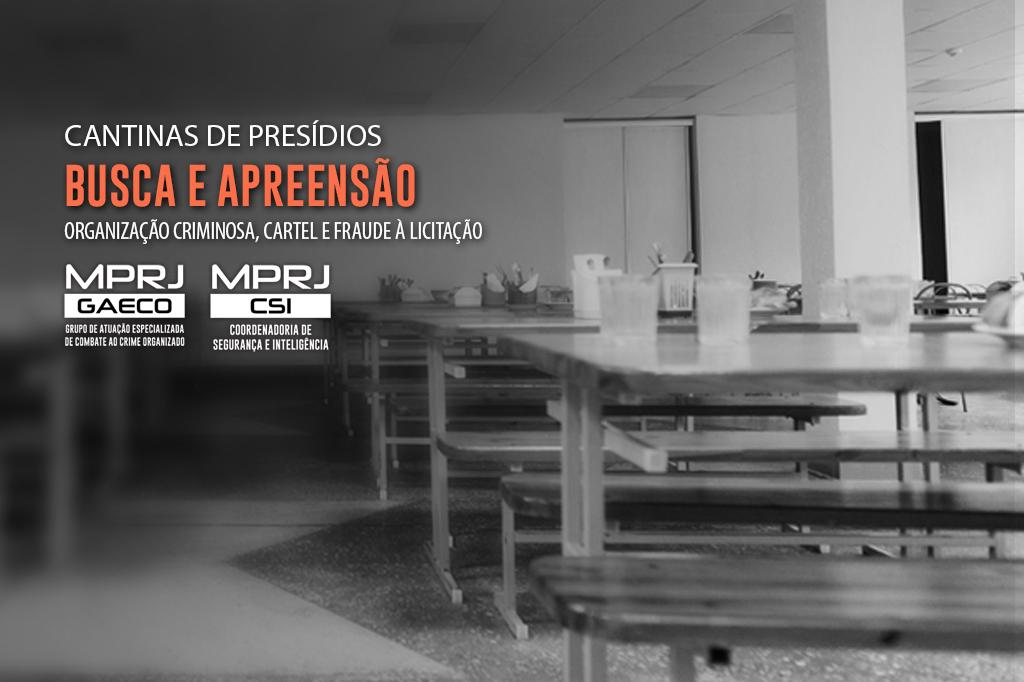 O Grupo de Atuação Especializada de Combate ao Crime Organizado do Ministério Público do Estado do Rio de Janeiro (GAECO/MPRJ), com o apoio da Coordenadoria de Segurança e Inteligência, cumpre quatro mandados de busca e apreensão contra investigados por organização criminosa, cartel e fraude à licitação relacionadas à permissão de funcionamento de cantinas nos presídios e casas de custódia no Estado do Rio de Janeiro. A operação Snack Time, deflagrada nesta terça-feira (12/11), decorre de um procedimento investigatório criminal (PIC) do GAECO/MPRJ que apura a máfia das cantinas.