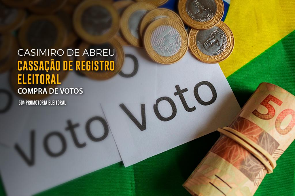 O Ministério Público Eleitoral (MPE) ajuizou uma ação por captação ilícita de sufrágio contra a vereadora eleita em Casimiro de Abreu pelo Podemos, Rosimery de Pezão, seu marido, Alessandro Macabu Araújo, e Ronaldo Mathias de Oliveira por compra de votos. A ação, proposta pela 50ª Promotoria Eleitoral, requer a cassação do registro da vereadora eleita, além do pagamento de multa pelos envolvidos.
