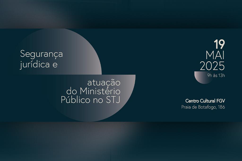 O Ministério Público do Estado do Rio de Janeiro (MPRJ), a FGV Justiça e o Tribunal de Justiça do Estado do Rio de Janeiro (TJRJ) promovem, no dia 19 de maio de 2025, das 9h às 13h, o seminário “Segurança Jurídica e Atuação do Ministério Público no STJ”, no Centro Cultural da FGV, localizado na Praia de Botafogo, nº 186 - RJ.