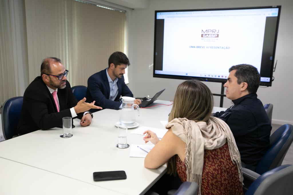 Durante a reunião, foram discutidas estratégias para aperfeiçoar a interlocução do MPRJ com a corporação, como a realização de palestras de integrantes do GAESP/MPRJ para policiais militares em cursos de aperfeiçoamento.