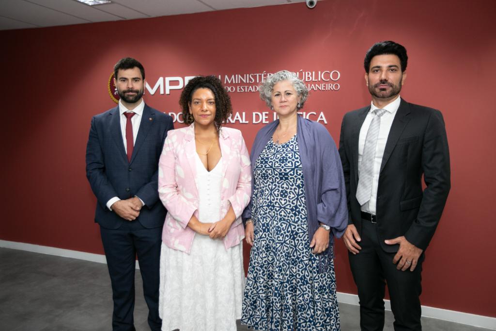 A subprocuradora-geral de Justiça de Direitos Humanos e Proteção à Vítima (SUBDHPV), Patrícia Glioche; o coordenador de Direitos Humanos e Controle de Convencionalidade, Tiago Veras, e o coordenador de Autocomposição, Victor Miceli, receberam, nesta terça-feira (03/06), a visita da deputada estadual e presidente da Comissão de Defesa dos Direitos da Mulher da Alerj, Renata Souza.