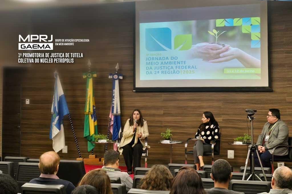 A promotora de Justiça Zilda Januzzi, titular da 1ª Promotoria de Justiça de Tutela Coletiva do Núcleo Petrópolis e integrante do Grupo de Atuação Especializada em Meio Ambiente (GAEMA), participou, nesta quarta-feira (11/06), da 3ª Jornada do Meio Ambiente da Justiça Federal da 2ª Região, com o tema “Biodiversidade, Justiça e Direitos Intergeracionais: para onde vamos?”. O evento foi realizado no auditório do TRF2, no centro da cidade, e transmitido também de forma online pela plataforma Zoom.