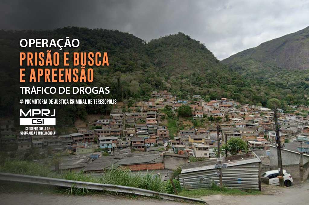 O Ministério Público do Estado do Rio de Janeiro (MPRJ), por meio da 4ª Promotoria de Justiça Criminal de Teresópolis, com apoio da Coordenadoria de Segurança e Inteligência (CSI/MPRJ), cumpre, nesta quarta-feira (09/07), 25 mandados de busca e apreensão e seis mandados de prisão contra integrantes da facção criminosa Comando Vermelho com atuação em Teresópolis, investigados pelos crimes de homicídio e associação para o tráfico. Os mandados estão sendo cumpridos nas comunidades do Corte Oito, Santuário e Sapo, em Duque de Caxias, na Baixada Fluminense, e em comunidades em Teresópolis, principalmente Quinta Lebrão, Fonte Santa e Paineiras. Três investigados foram presos no curso da operação, entre eles Carlos Eduardo Santos da Silva, apontado como uma das principais lideranças do Comando Vermelho no interior do Estado.