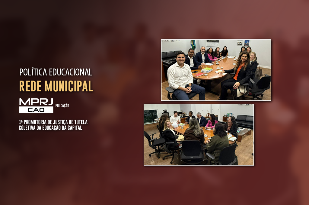 O Centro de Apoio Operacional das Promotorias de Justiça de Tutela Coletiva de Proteção à Educação (CAO Educação/MPRJ) participou, no dia 8 de julho, de reunião promovida pela 1ª Promotoria de Justiça de Tutela Coletiva da Educação da Capital com a Secretaria Municipal de Educação do Rio de Janeiro (SME-Rio). O objetivo do encontro foi apresentar pautas prioritárias, alinhar estratégias de atuação e fortalecer o diálogo institucional com o Poder Executivo sobre temas estruturantes da política educacional do município.