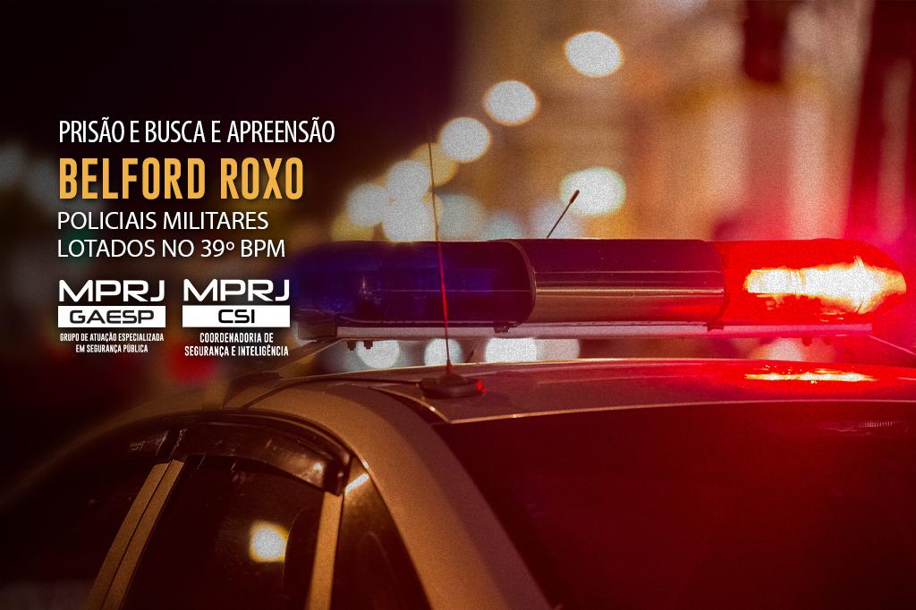 O Grupo de Atuação Especial de Segurança Pública do Ministério Público do Estado do Rio de Janeiro (GAESP/MPRJ), com o apoio da Coordenadoria de Segurança e Inteligência (CSI/MPRJ), cumpriu nesta quinta-feira (14/08) mandados de prisão e de busca e apreensão contra dez policiais militares denunciados por organização criminosa instalada no 39º BPM (Belford Roxo). De acordo com a denúncia, os policiais recebiam propina semanal de diversos comerciantes para prestar segurança armada a estabelecimentos em Belford Roxo durante o expediente no batalhão.