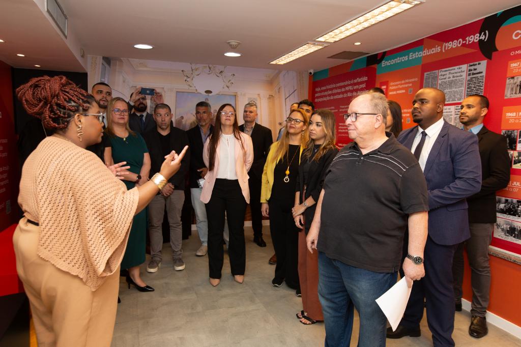 O Ministério Público do Estado do Rio de Janeiro, por meio do Centro de Memória Procurador de Justiça João Marcelo de Araújo Júnior (CDM/MPRJ), recebeu, nesta quinta-feira (21/08), os estudantes do curso de Direito da Universidade São José para mais uma visita guiada às exposições Congressos e Encontros: em Construção da Cidadania e O MP e o Novo Estado: os 50 anos da fusão.
