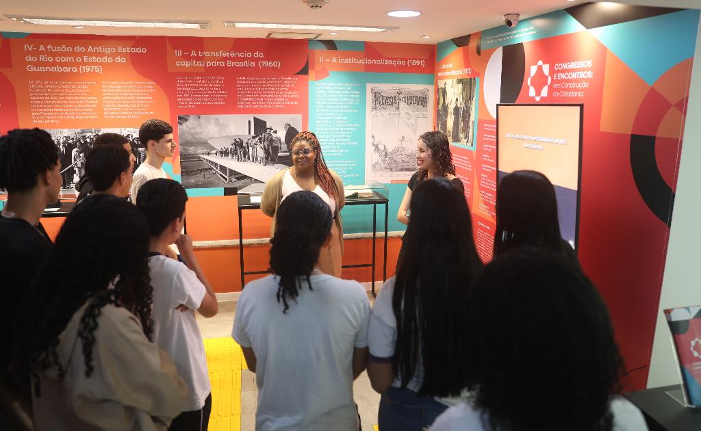 O Ministério Público do Estado do Rio de Janeiro (MPRJ) recebeu, nesta terça-feira (02/09), um novo grupo de estudantes por meio do Centro de Memória Procurador de Justiça João Marcello de Araújo Júnior (CDM/MPRJ). A visita guiada contou com a presença dos estudantes do 9º ano da Escola Municipal José de Alencar, situada em Laranjeiras, na zona Sul do Rio, que visitaram as exposições Congressos e Encontros: em Construção da Cidadania e O MP e o Novo Estado: os 50 anos da fusão.