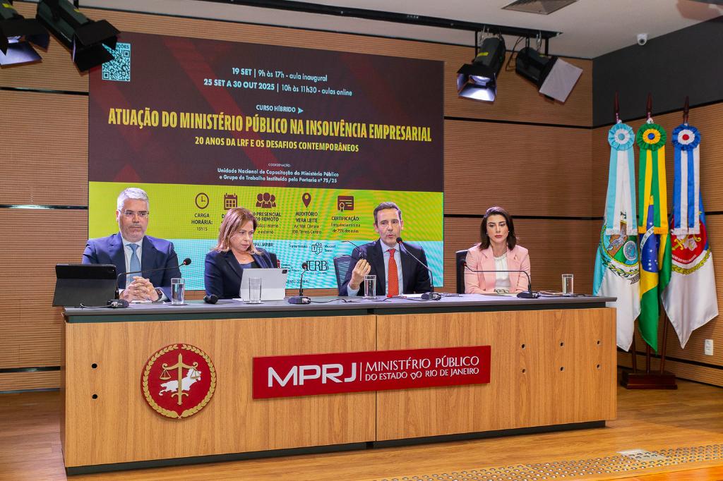 O Ministério Público do Estado do Rio de Janeiro (MPRJ), por meio do Instituto de Educação Roberto Bernardes Barroso (IERBB/MPRJ), iniciou, na sexta-feira (19/09), a primeira aula do curso “Atuação do Ministério Público na Insolvência Empresarial: 20 anos da Lei de Recuperação Judicial e Falências e os Desafios Contemporâneos”, no auditório Vera Leite. Coordenado pela Unidade Nacional de Capacitação do Ministério Público e pelo Grupo de Trabalho instituído pela Portaria nº 75/25, o evento, direcionado ao público interno e externo, contou com a participação de especialistas em direito empresarial, promovendo debates sobre os avanços e desafios na área.