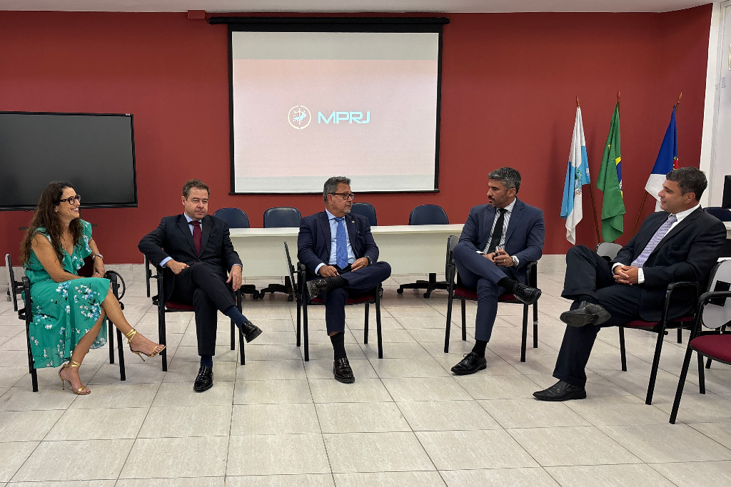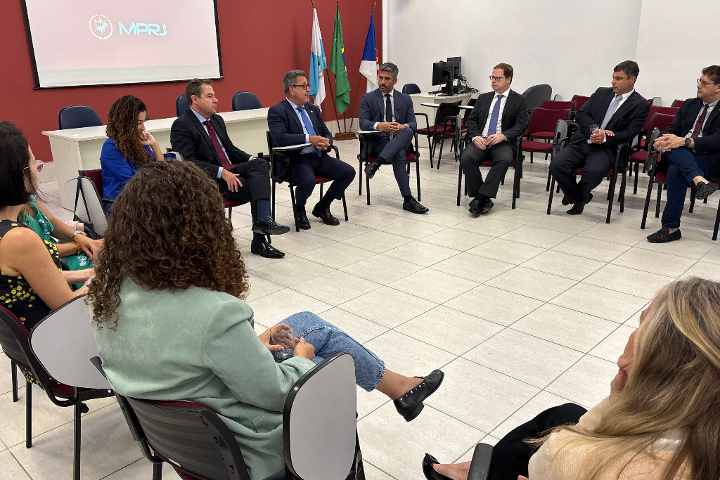 A reunião contou com a participação do chefe de Gabinete, Guilherme Schueler; da assessora da Chefia de Gabinete e assessora internacional do MPRJ, Carina Senna; e do coordenador da Coordenadoria de Inteligência de Investigação do MPRJ (CI2/MPRJ), Francisco Cardoso, além do presidente da Associação do Ministério Público do Estado do Rio de Janeiro (Amperj), procurador de Justiça Cláudio Henrique Viana, e do diretor financeiro da entidade, promotor de Justiça Felipe Barbosa Freitas Ribeiro.