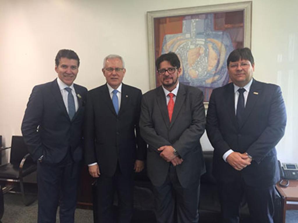 O subprocurador-geral de Justiça de Relações Institucionais e Defesa de Prerrogativas, Marfan Martins Vieira, e o presidente da Associação do Ministério Público do Estado do Rio de Janeiro (Amperj), Luciano Mattos, reuniram-se, nesta quinta-feira (16/2), com o vice-presidente da Câmara dos Deputados, o deputado federal Fábio Ramalho (PMDB/MG). Durante o encontro, realizado em Brasília, Marfan Vieira e Luciano Mattos manifestaram preocupação com a tramitação de matérias que ameaçam a autonomia, os direitos e as prerrogativas do Ministério Público e de seus membros. Também participou da reunião o procurador de Justiça do Ministério Público do Estado de Minas Gerais (MPMG) e ex-integrante do Conselho Nacional do Ministério Público (CNMP), Jarbas Soares Júnior.