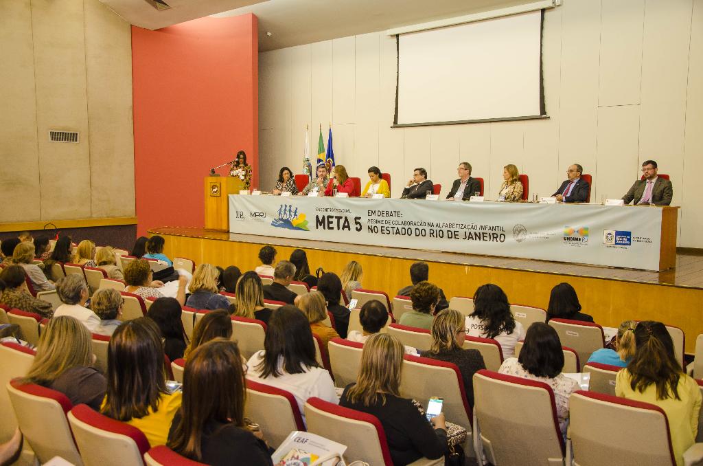 A meta 5 do PNE propõe-se a completar o ciclo de alfabetização infantil até o 3º ano do ensino fundamental e, desse modo, sua efetiva execução é capaz de gerar impactos positivos no cumprimento de outras metas previstas. O evento, organizado pelo Centro de Apoio Operacional das Promotorias de Justiça de Proteção à Educação (CAO Educação/MPRJ), Universidade Federal do Rio de Janeiro (UFRJ), Secretaria Estadual de Educação do Rio de Janeiro (SEEDUC) e União dos Dirigentes Municipais de Educação (UNDIME/RJ), contou com a parceria do Instituto de Educação e Pesquisa do Ministério Público do Estado do Rio de Janeiro (IEP/MPRJ).