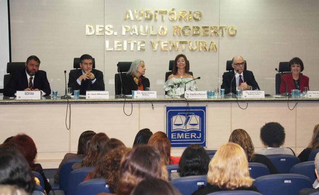 A mesa de debate foi mediada pela desembargadora Katya Maria Monnerat, presidente do Fórum Permanente de Direito da Família e Sucessões e também contou com a presença dos palestrantes desembargador Antônio Carlos Mathias Coltro, presidente do Instituto Brasileiro de Direito Constitucional; da procuradora de Justiça aposentada do MPRJ Heloisa Helena Barboza, professora titular da Universidade do Estado do Rio de Janeiro (UERJ), e de Luiz Claudio Guimarães, presidente do Instituto Brasileiro de Direito de Família (IBDFAM).
