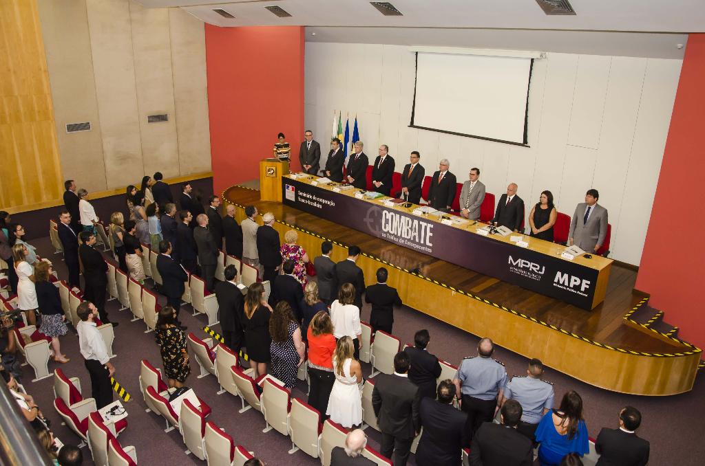 A mesa de abertura também foi composta pelo cônsul-geral da França no Rio de Janeiro, Brice Roquefeuil; o corregedor-geral do MPRJ, Pedro Elias Erthal Sanglard; o coordenador do Centro de Estudos e Aperfeiçoamento do MPRJ, Sávio Bittencourt; o desembargador Cláudio Dell´Orto, representando o desembargador Ricardo Rodrigues Cardozo, diretor-geral da Escola de Magistratura do Estado do Rio de Janeiro; o presidente da Associação do Ministério Público do Estado (AMPERJ), Luciano Mattos; e os procuradores de Justiça Lilian Pinho (MPRJ) e Jean Philippe Rivaud (França).