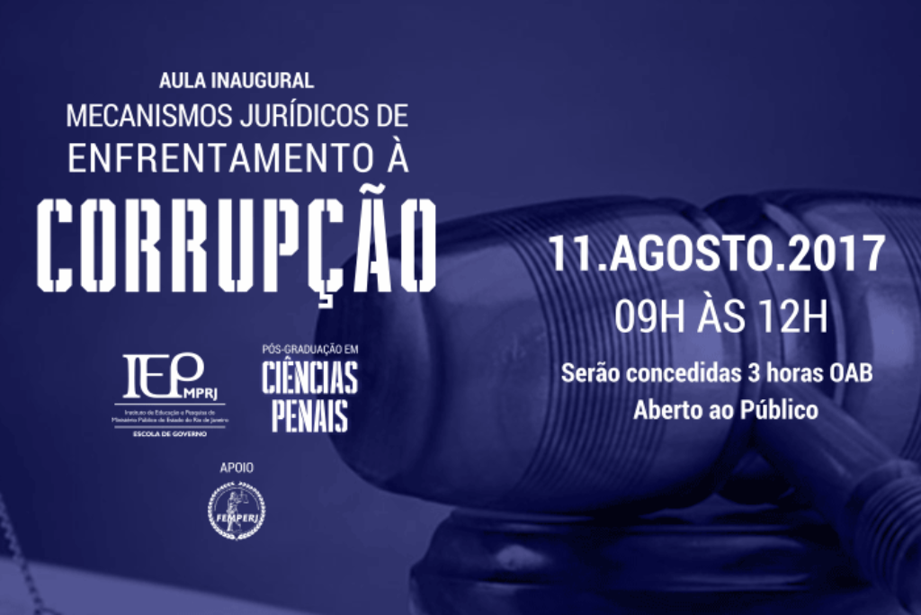 O Ministério Público do Estado do Rio de Janeiro (MPRJ), por meio do Instituto de Educação e Pesquisa (IEP/MPRJ) promove, no dia 11/08, às 9h, em sua sede, palestra com o desembargador federal Fausto Martin De Sanctis e com o juiz federal Marcelo Bretas. Na aula inaugural do Curso de Pós-Graduação em Ciências Penais do Instituto, os magistrados vão abordar os “Mecanismos Jurídicos de Combate à Corrupção”