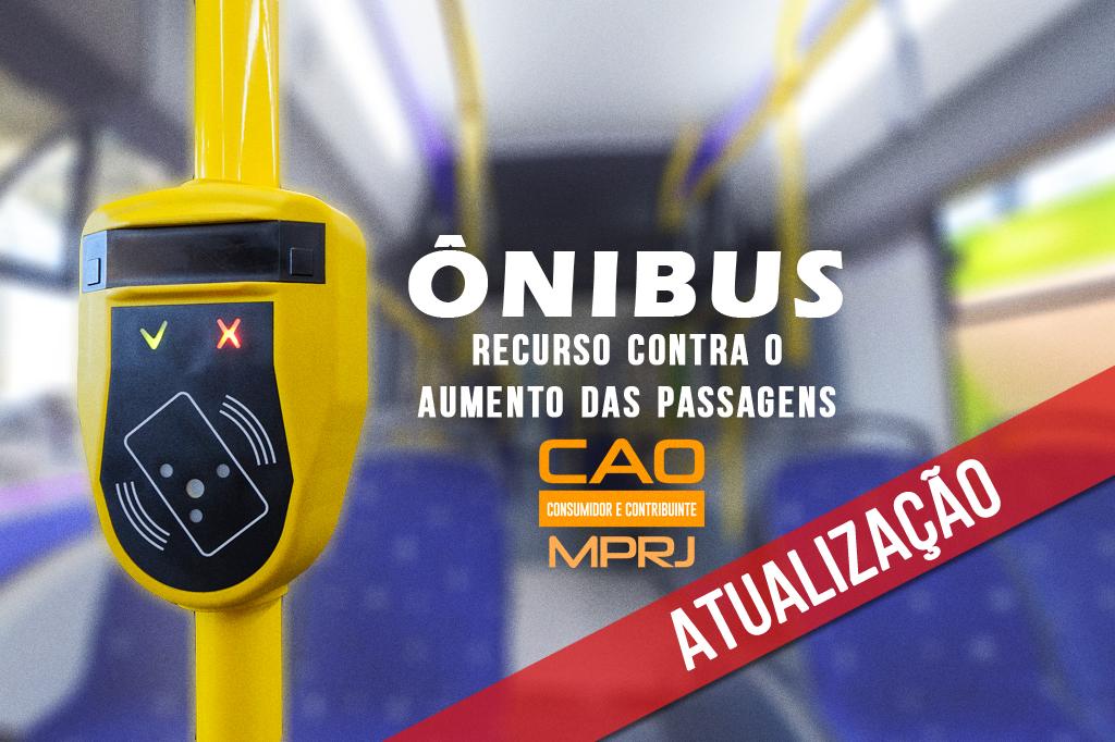 O Ministério Público do Estado do Rio de Janeiro (MPRJ), por meio da 6ª Promotoria de Justiça de Fazenda da Capital, obteve, nesta quinta-feira (08/02), liminar suspendendo os efeitos da decisão de 1º grau que determinou o aumento do valor das passagens dos ônibus do município do Rio de Janeiro para R$ 3,60. Com a decisão da desembargadora Flávia Romano de Rezende, da 17ª Câmara Cível do Tribunal de Justiça do Estado do Rio de Janeiro (TJRJ), a passagem volta a custar R$ 3,40.