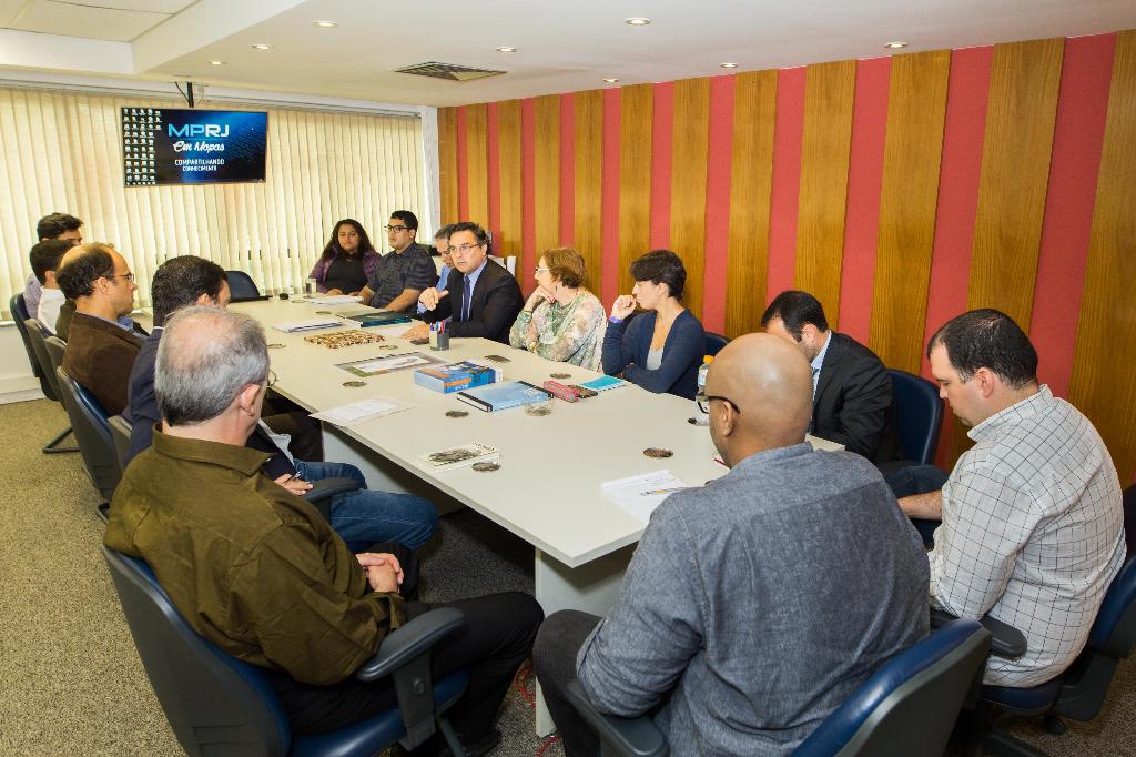 O procurador-geral de Justiça do Estado do Rio de Janeiro, Eduardo Gussem, promotores de Justiça e pesquisadores do Ministério Público do Estado do Rio de Janeiro (MPRJ) receberam pesquisadores do Instituto de Pesquisa Econômica Aplicada (IPEA) nesta quinta-feira (01/02), na sede do MPRJ, no Centro do Rio. A reunião teve o objetivo de iniciar o trabalho de cooperação entre as instituições para identificar a carga de trabalho e o resultado esperado de cada órgão do Ministério Público fluminense.