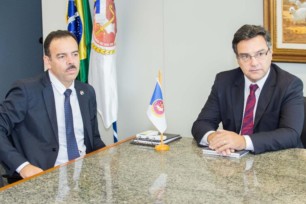 O Ministério Público do Estado do Rio de Janeiro (MPRJ) recebeu, nesta sexta-feira (09/03), o novo secretário de Segurança do Estado, general Richard Fernandez Nunes, para reunião com o procurador-geral de Justiça, Eduardo Gussem. Essa foi a sua primeira visita oficial como titular da Secretaria de Estado (Seseg), tendo apresentado alguns de seus planos de atuação para os próximos dez meses – prazo inicial da intervenção federal na área de segurança pública do Rio de Janeiro. Também teve a oportunidade de trocar informações e ideias com representantes de diversos setores do MPRJ que se relacionam com a área de segurança do Estado.