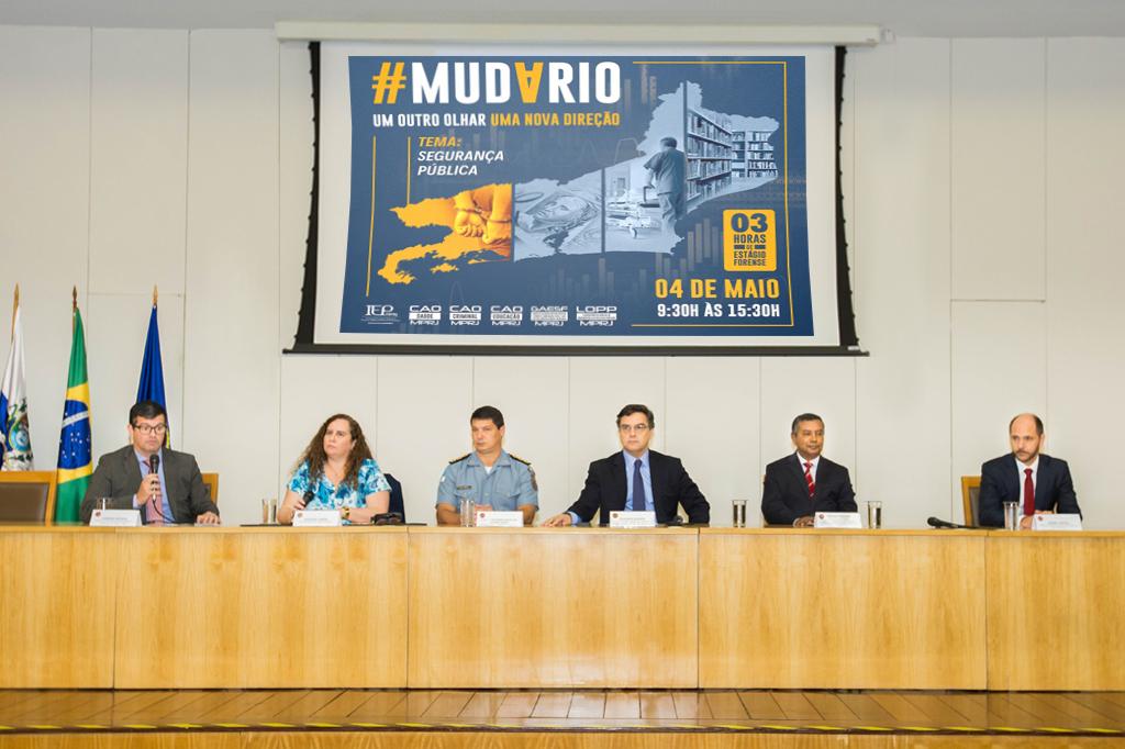 O Ministério Público do Estado do Rio de Janeiro, por meio do Instituto de Educação e Pesquisa (IEP/MPRJ), realizou, nesta sexta-feira (04/05), no auditório do edifício-sede do MPRJ, a abertura do evento #MUDARIO: Um outro olhar, uma nova direção, ciclo de debates sobre os temas Segurança Pública, Saúde, Educação e área Fiscal. Neste primeiro dia, os painéis foram dedicados ao tema da Segurança, com participação de autoridades públicas, acadêmicos e membros do Ministério Público. Ao fim dos debates, um documento oficial com propostas será encaminhado pelo MPRJ a todos os candidatos ao governo do Rio, para que avaliem a possibilidade de inclusão das sugestões em seus programas de governo..