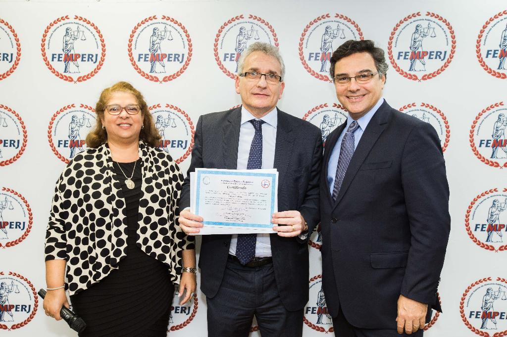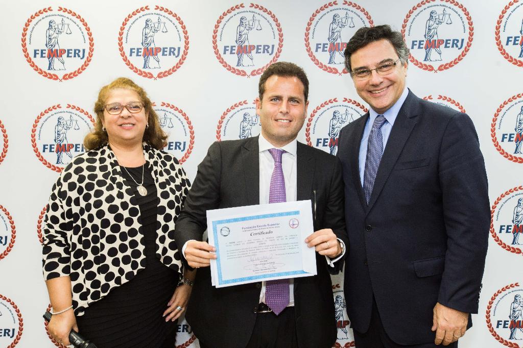 O procurador-geral de Justiça do Estado do Rio de Janeiro, Eduardo Gussem, participou nesta segunda-feira (07/5) de solenidade de inauguração da placa comemorativa e da entrega do título honorário de professor emérito na Fundação Escola Superior do Ministério Público do Estado do Rio de Janeiro (FEMPERJ). A honraria foi concedida a 37 docentes que se distinguiram por atividades didáticas ou que tenham contribuído, de modo notável, para a evolução e a qualidade de ensino na instituição.