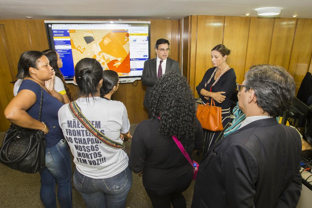 O grupo, composto por sete familiares, teve como porta-voz Glaucia dos Santos, mãe de um jovem de 17 anos morto por policiais, durante operação no Complexo do Chapadão. “Com a intervenção houve o acirramento das operações nas favelas devido ao uso de enorme aparato bélico. Tais ações colocam em risco a vida de milhares de pessoas. Há ainda denúncias de invasões a residências, execuções sumárias e tortura de presos”, registrou.