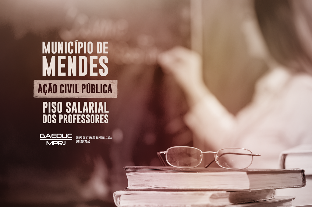 O Ministério Público do Estado do Rio de Janeiro (MPRJ), por meio do Grupo de Atuação Especializada em Educação (GAEDUC/MPRJ), ajuizou Ação Civil Pública (ACP) com pedido de tutela da evidência para exigir que o Município de Mendes cumpra a Lei 11.738/2008, que institui o piso salarial profissional nacional para os profissionais do magistério público da educação básica. De acordo com a petição inicial, assinada pela promotora de Justiça Patrícia Cesário de Faria Alvim, a remuneração recebida pelo Professor II contratado no município é de R$ 1.200,00 para a carga horária semanal de 25 horas, e de R$ 1.680,00 para 35 horas semanais quando, na verdade, o valor mínimo do vencimento base deveria ser, respectivamente, de R$ 1.534,59 (25h) e R$ 2.148,43 (35h).