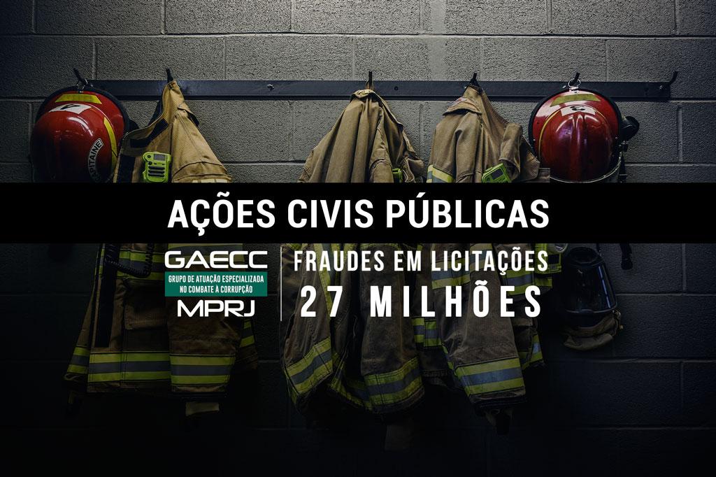 O Ministério Público do Estado do Rio de Janeiro (MPRJ), por meio do Grupo de Atuação Especializada no Combate à Corrupção (GAECC/MPRJ), ajuizou duas ações civis públicas (ACPs) por atos de improbidade administrativa em razão de operações fraudulentas realizadas na compra de equipamentos para o Corpo de Bombeiros, órgão ligado à Secretaria Estadual de Saúde e Defesa Civil. Entre os acusados pelas fraudes, que juntas somam prejuízos de mais de R$ 27 milhões aos cofres públicos, estão o ex-governador Sérgio Cabral Filho e o ex-secretário estadual de Saúde e Defesa Civil Sérgio Côrtes.